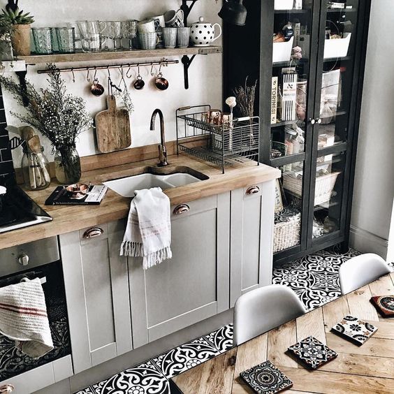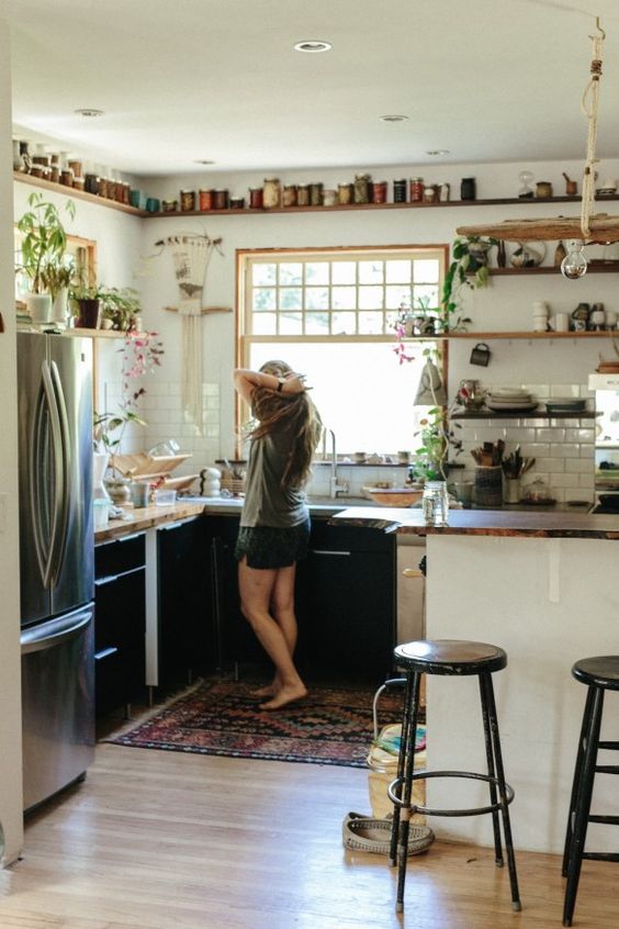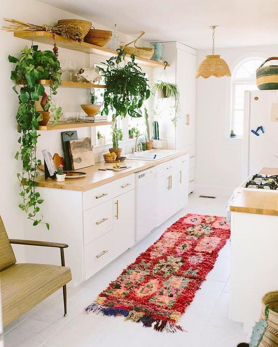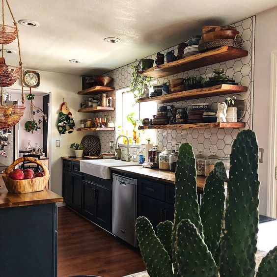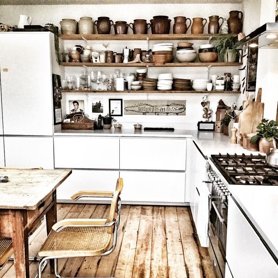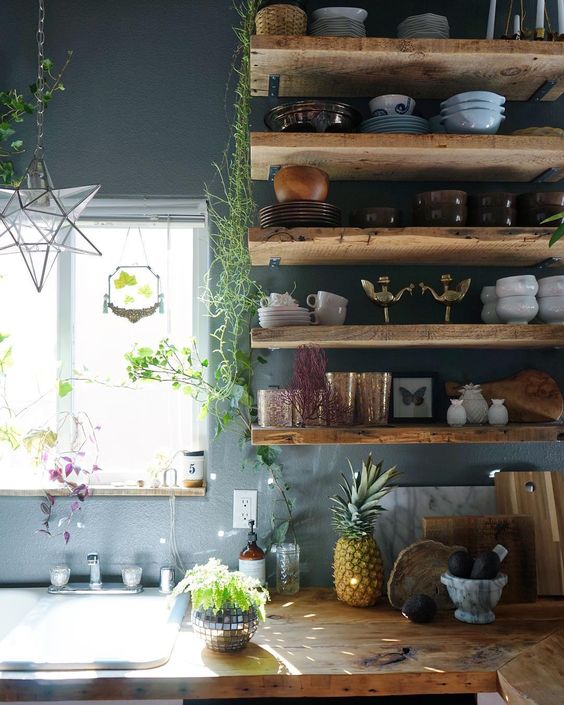 Enfin, si vous voulez une décoration de style bohémien vintage, ajoutez des étagères en bois. Ajoutez aussi une plante ou deux pour donner à la cuisine un look chaleureux.
