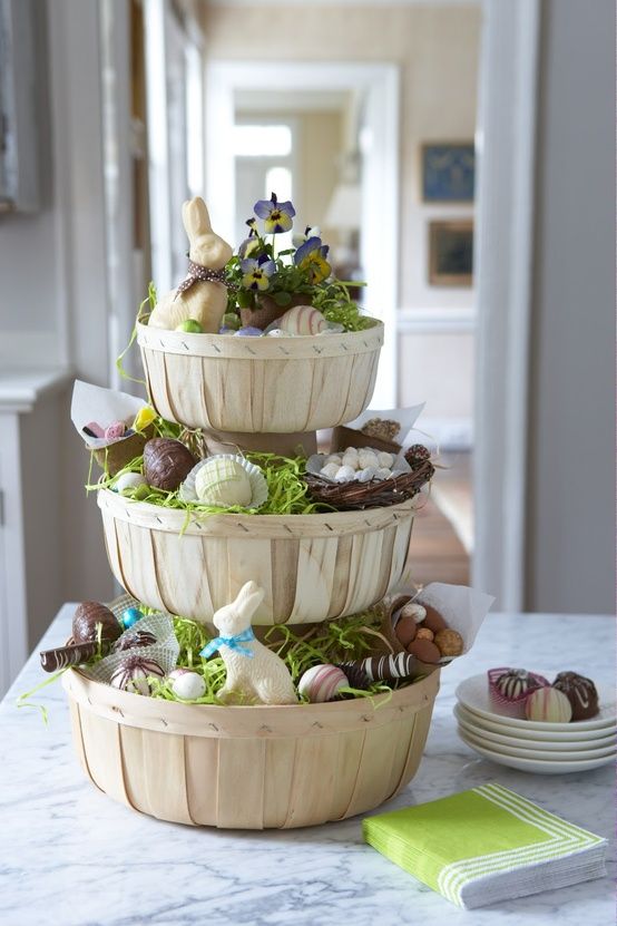 Vous pourrez aussi utiliser de petits paniers comme décorations de table. Préférez des paniers de couleur blanche. A l’intérieur, disposez des objets de couleur verte, des feuilles d’arbre ou de la mousse. Vous pouvez aussi y placer des mini bols, des assiettes apéritif pour présenter vos chocolats. Enfin, ajoutez aussi vos œufs personnalisés et des fleurs.