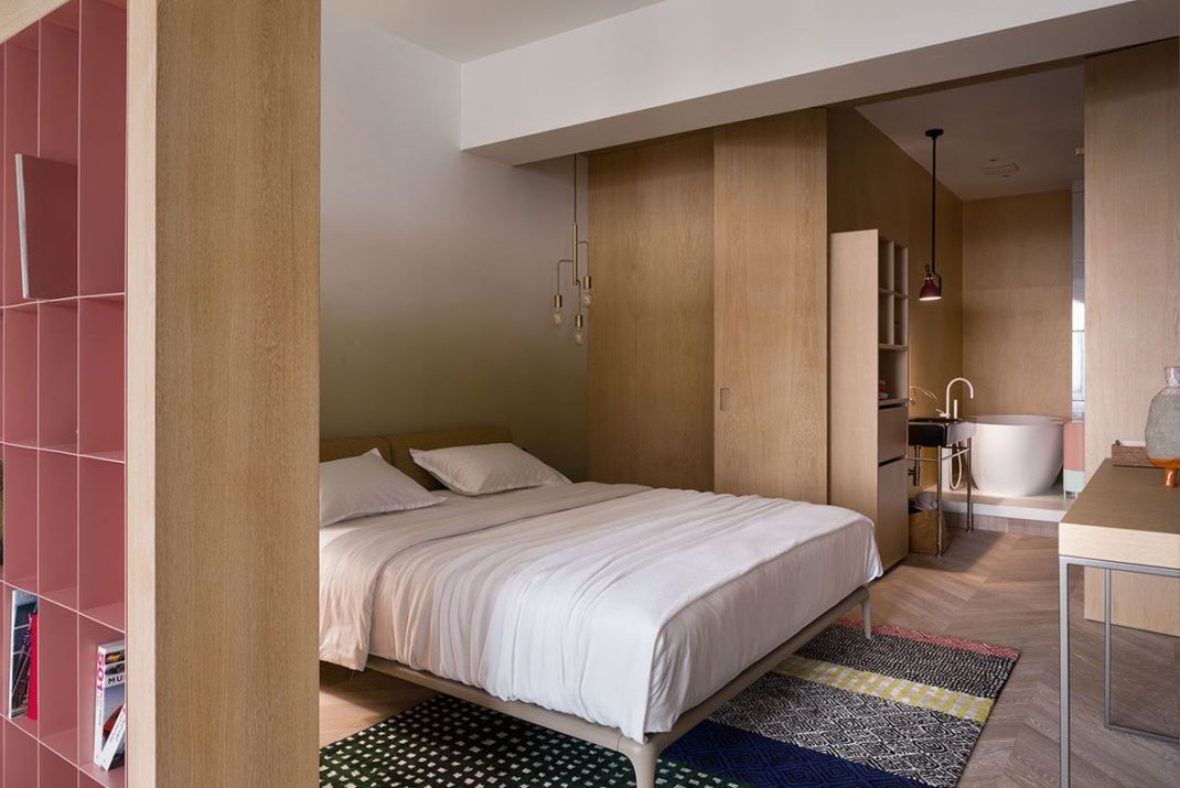 Olha Wood dévoile un appartement mixant le béton et le rose