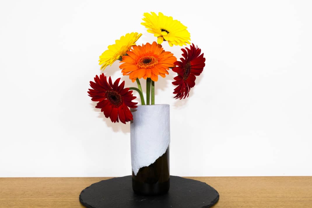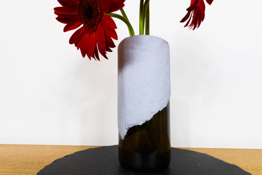 Je trouve qu’une bouteille en verre est en soi déjà très décorative. D’ailleurs, beaucoup de personnes l’utilisent tel quel pour en faire un vase. Mais pour ce petit atelier DIY, j’ai décidé d’aller un peu plus loin et de n’en réutiliser qu’une partie. J’ai aussi souhaité opposer la fragilité du verre et la robustesse du béton pour créer un objet pouvant aussi bien être utilisé dans un intérieur classique, que contemporain ou encore industriel.