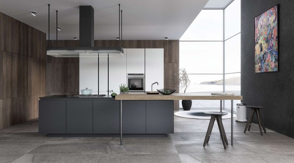 Les exemples suivants sont aussi minimalistes mais de façon un peu plus raisonnable. La cuisine étant de plus en plus un lieu de vie, ces deux exemples sont tout de même plus pratiques à utiliser au quotidien. La première photo est une création de Jakub Komrska et la seconde de Delta Tracing.