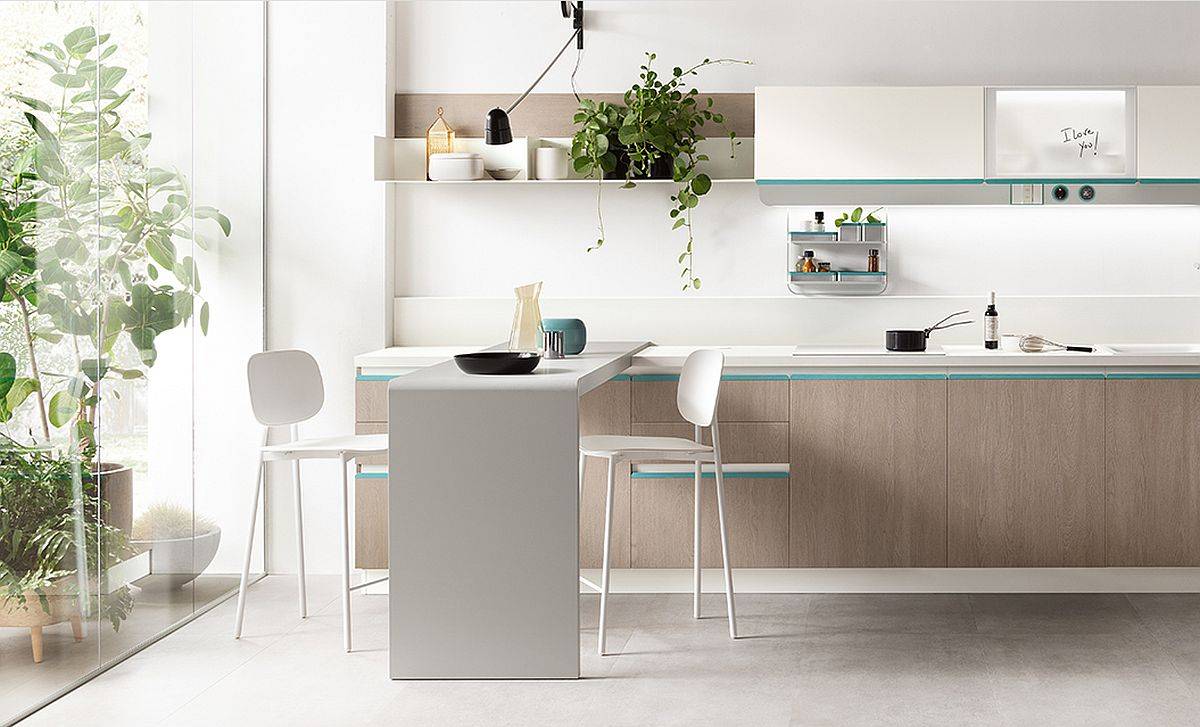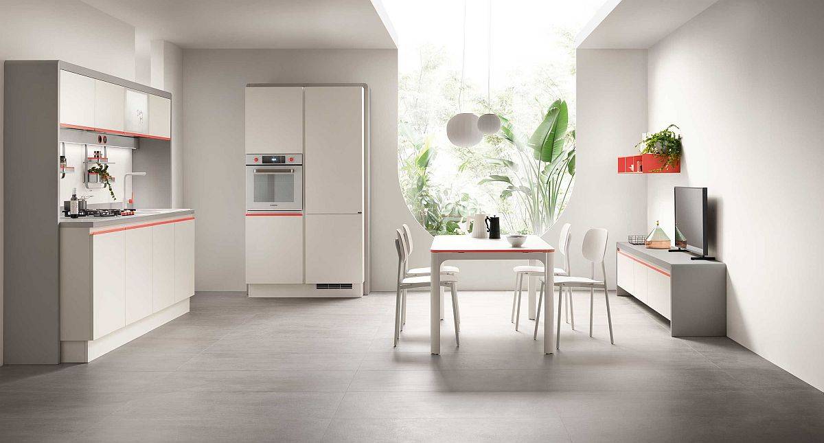 Ainsi, nous découvrons des tables étroites pour les repas à l’intérieur et des armoires murales élégantes qui maximisent l’espace vertical. Nous découvrons aussi des plans de travail intelligents qui vous permettent de cuisiner et de préparer facilement. C’est une cuisine contemporaine qui a tout pour plaire. Aussi, ajoutez à cela les nombreuses solutions de décoration sur mesure proposées par Scavolini et vous obtenez une cuisine fringante qui répond aux besoins de chacun.