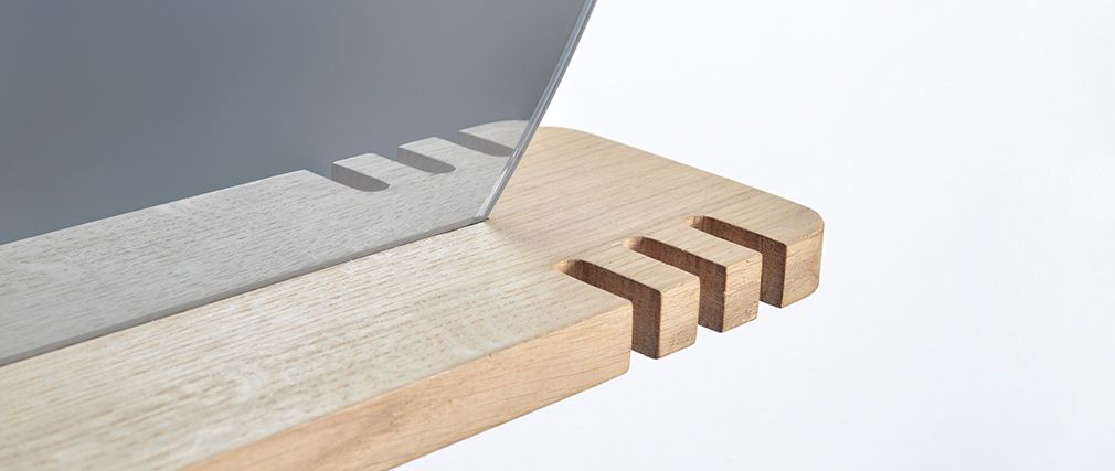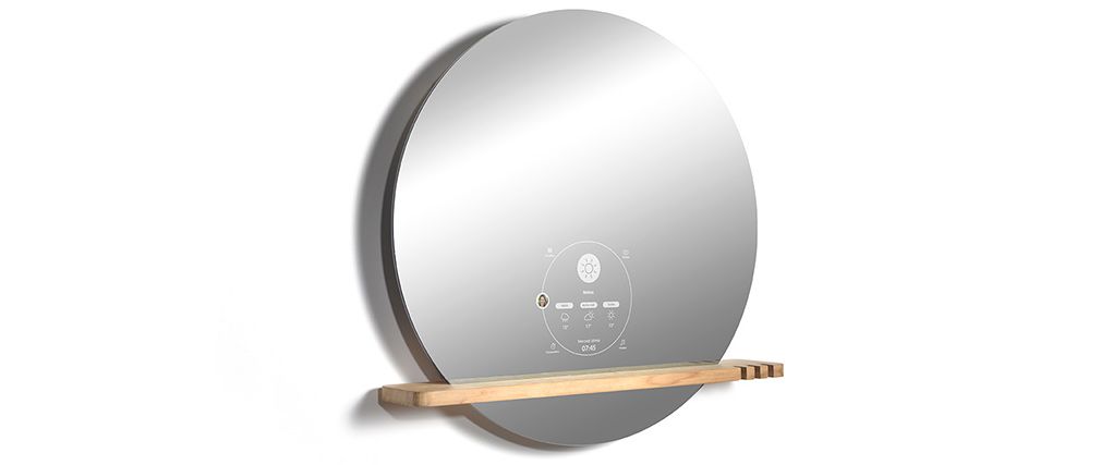 Côté design, c’est assez simple, relativement design et dans la tendance du moment. Le miroir (ou tout du moins la plaque en verre teinté de 8mm d’épaisseur) et son écran reposent sur une tablette en chêne massif. Vous pouvez choisir entre un miroir rond à suspendre ou un miroir de forme rectangulaire à poser. Si vous aimez les miroirs design, n’hésitez pas à aller faire un tour en cliquant sur ce lien !