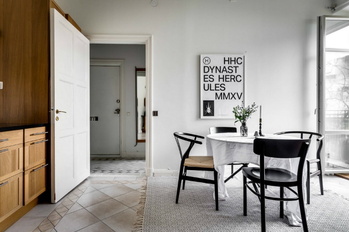 Bois et lumière ne sont font pas tout dans cet appartement. Le blanc est un peu le fil rouge de cet appartement. Du salon à la cuisine, en passant par la chambre, le blanc offre un sentiment de calme et transcende chaque pièce à sa manière. La clé de tout cela est la simplicité, mais les choses simples doivent être bien faites. Ici, chaque chose est à sa place. L’ordre est une des composantes indissociable du style scandinave.