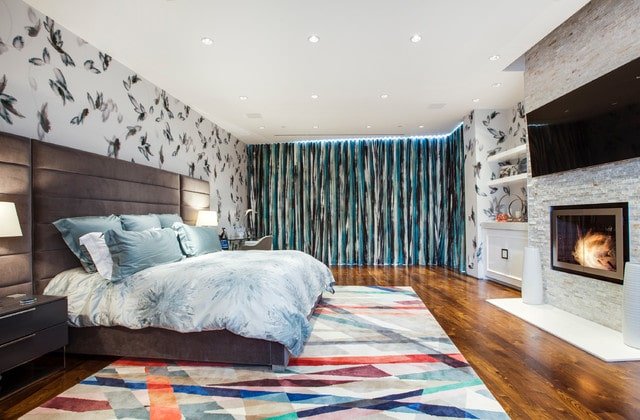 Cette chambre parentale propose un style déco très contemporain. Amusante et pleine de personnalité, c’est exactement ce que vous devez faire si vous souhaitez un style contemporain pour votre chambre à coucher. J’aime bien les différentes couleurs, formes et textures qui ont été apposées dans toute la pièce. Elles apportent une touche de modernité. Toutes les couleurs s’harmonisent bien, ce qui, selon moi, est très important pour ce type de décoration. De très belles idées déco !