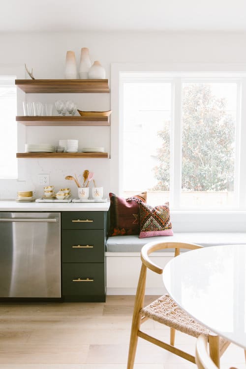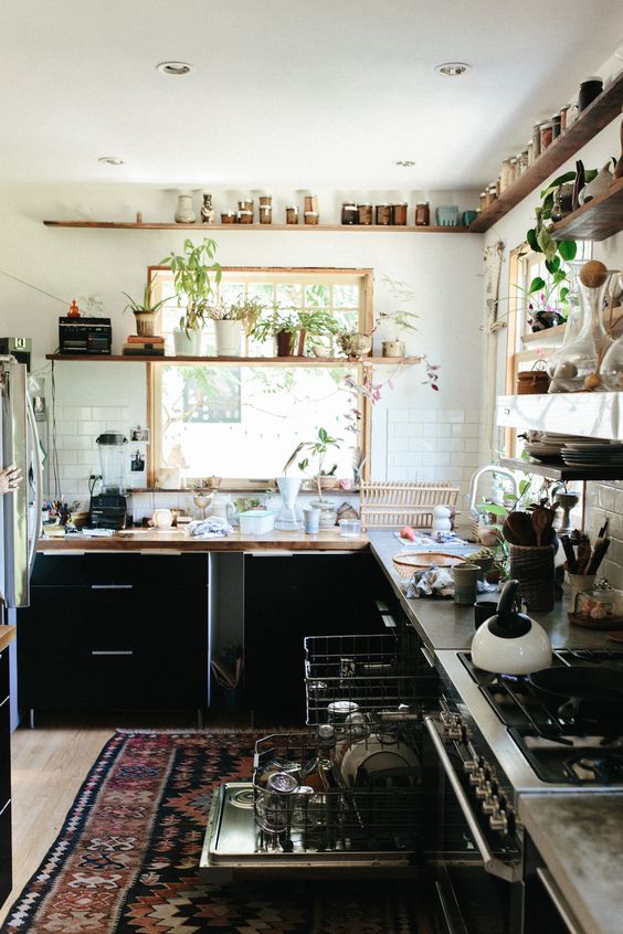 Enfin, si vous voulez une décoration de style bohémien vintage, ajoutez des étagères en bois. Ajoutez aussi une plante ou deux pour donner à la cuisine un look chaleureux.