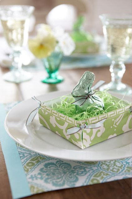 Vous pourrez aussi utiliser de petits paniers comme décorations de table. Préférez des paniers de couleur blanche. A l’intérieur, disposez des objets de couleur verte, des feuilles d’arbre ou de la mousse. Vous pouvez aussi y placer des mini bols, des assiettes apéritif pour présenter vos chocolats. Enfin, ajoutez aussi vos œufs personnalisés et des fleurs.