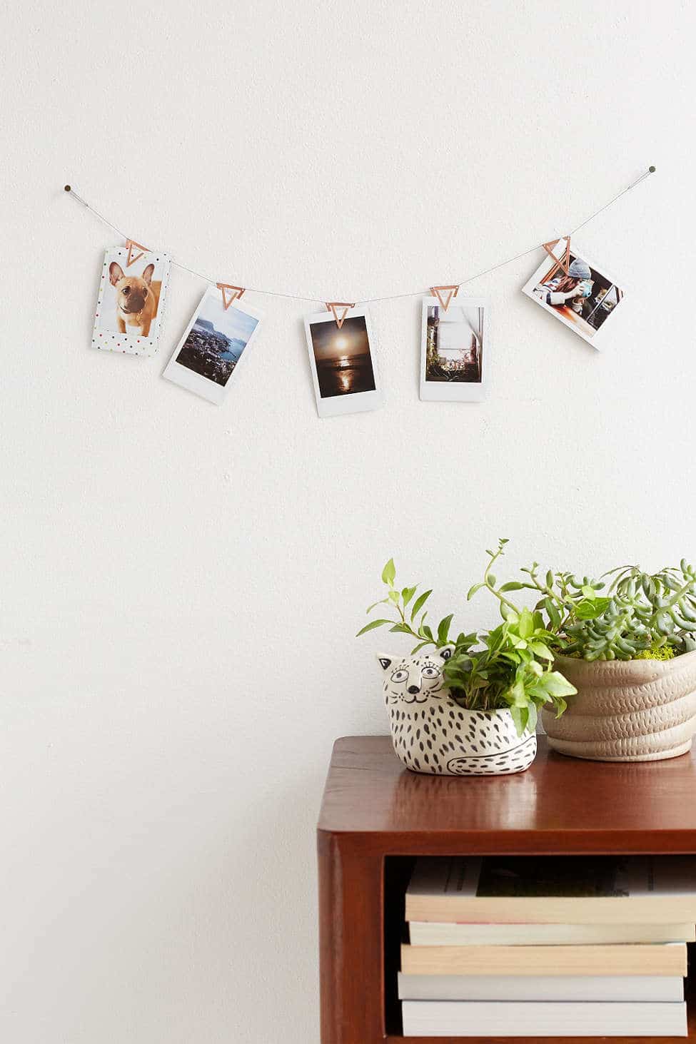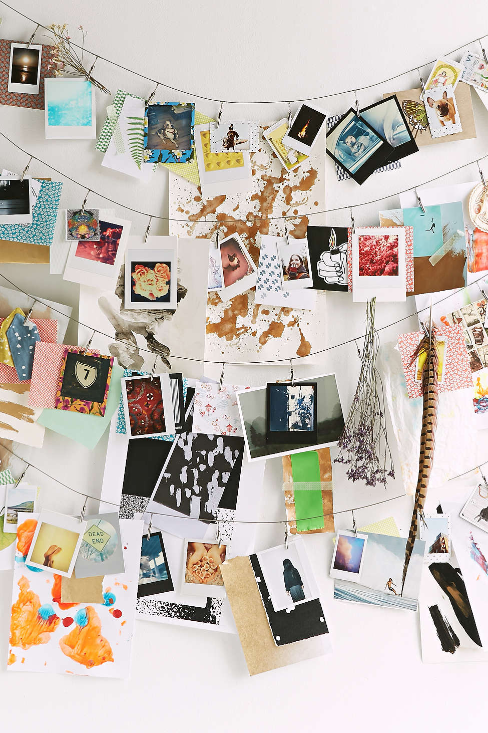 Enfin, pour votre déco murale, vous pouvez utilisez des pierres ou des cristaux auxquels vous attachez du fil de fer afin d’en faire des présentoirs pour vos photos.
