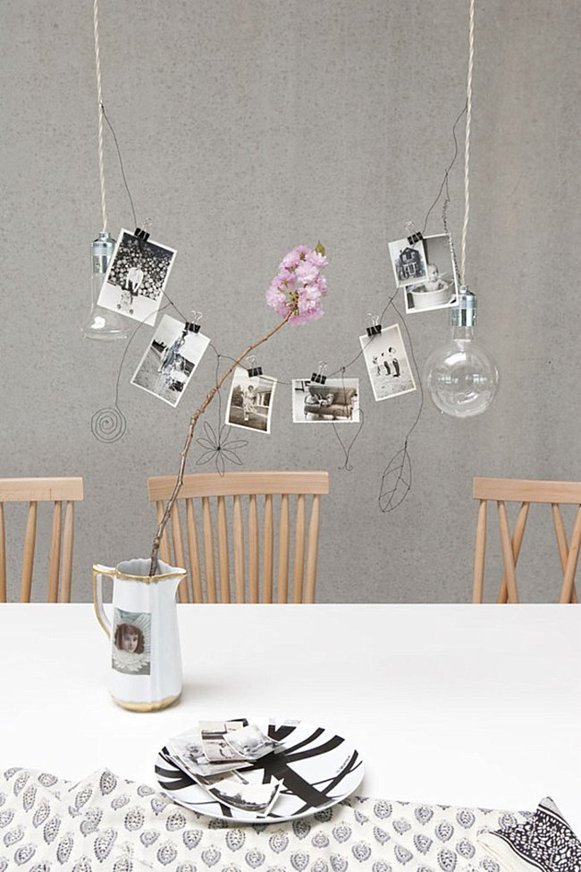 Enfin, pour votre déco murale, vous pouvez utilisez des pierres ou des cristaux auxquels vous attachez du fil de fer afin d’en faire des présentoirs pour vos photos.