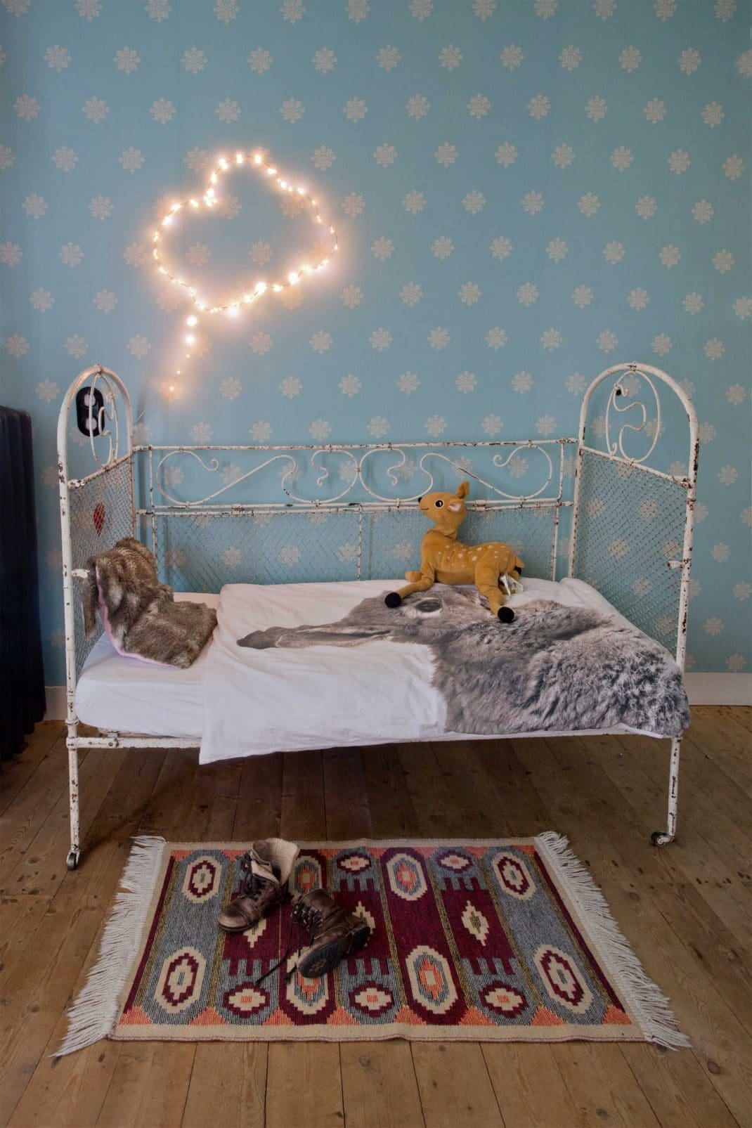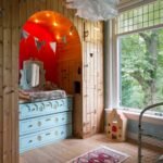 Cette maison a été décorée avec différents éléments qui lui confèrent une ambiance accueillante, mais aussi et surtout unique. Par exemple, dans le salon, un des murs a été entièrement recouvert avec la photo de deux enfants. En face d’un fauteuil assez moderne, une table basse a été fabriquée à partir d’un tronçon de tronc d’arbre.