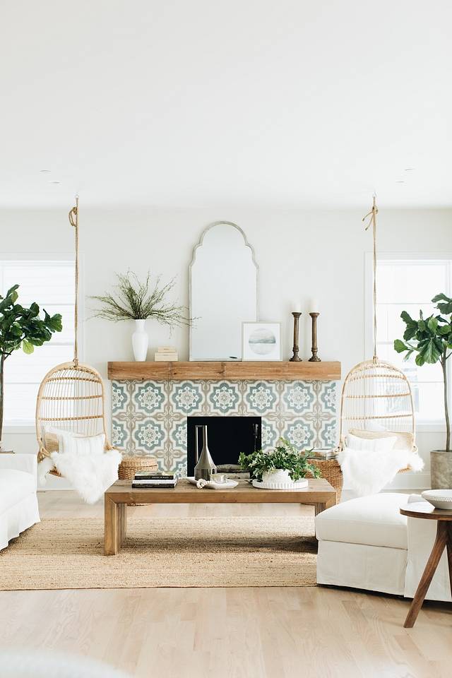 Nous aimons la façon dont cet espace emprunte des parties égales de chaque style ; créant un lien solide avec les meilleures caractéristiques. La chaise oscillante en rotin est d’inspiration bohème, tandis que la table minimaliste est plus orientée vers le style scandinave. Cependant, le tapis texturé et l’abondance de verdure sont standard pour les deux styles.
