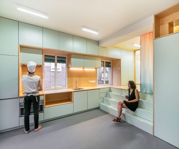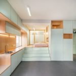 « Ce travail fait partie d’une série de projets d’espaces domestiques transformables », explique Elii. « L’intérieur du foyer est configuré comme un petit « théâtre domestique ». Nous pensons que ces propositions sont intéressantes non seulement parce qu’elles économisent de l’espace ; mais aussi parce qu’elles augmentent la potentialité de l’expérience des habitants «