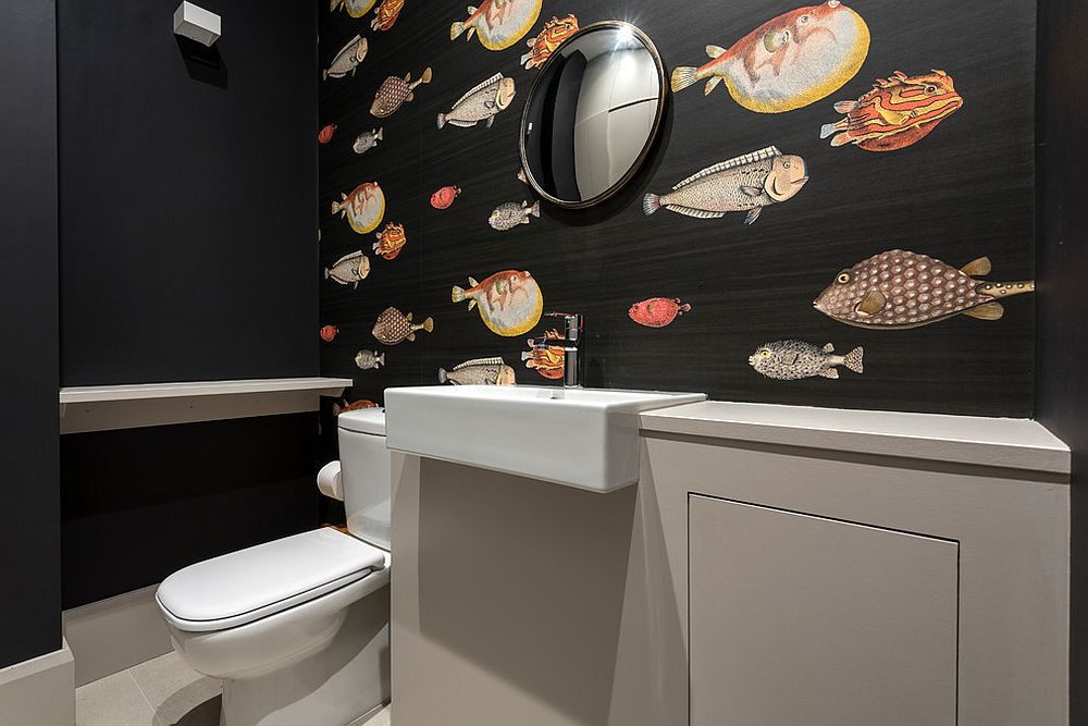 Les salles de bain sont un endroit où vous pouvez essayer n’importe quelle nouvelle tendance sans prendre trop de risque. Mais attention, dans les petites salles de bain, les murs drapés de papier peint jungle, de papier peint à feuilles peuvent sembler un peu lourds si l’on en abuse.