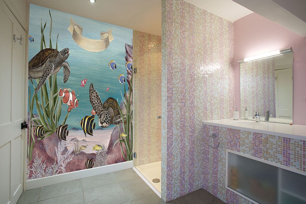 Des papiers peints personnalisés sur le thème de la jungle avec de grands détails ou des motifs de sable ajouteront aussi une touche tropicale et rafraîchissante. Vous pouvez aussi opter pour le papier peint moderne d’Izoa.
