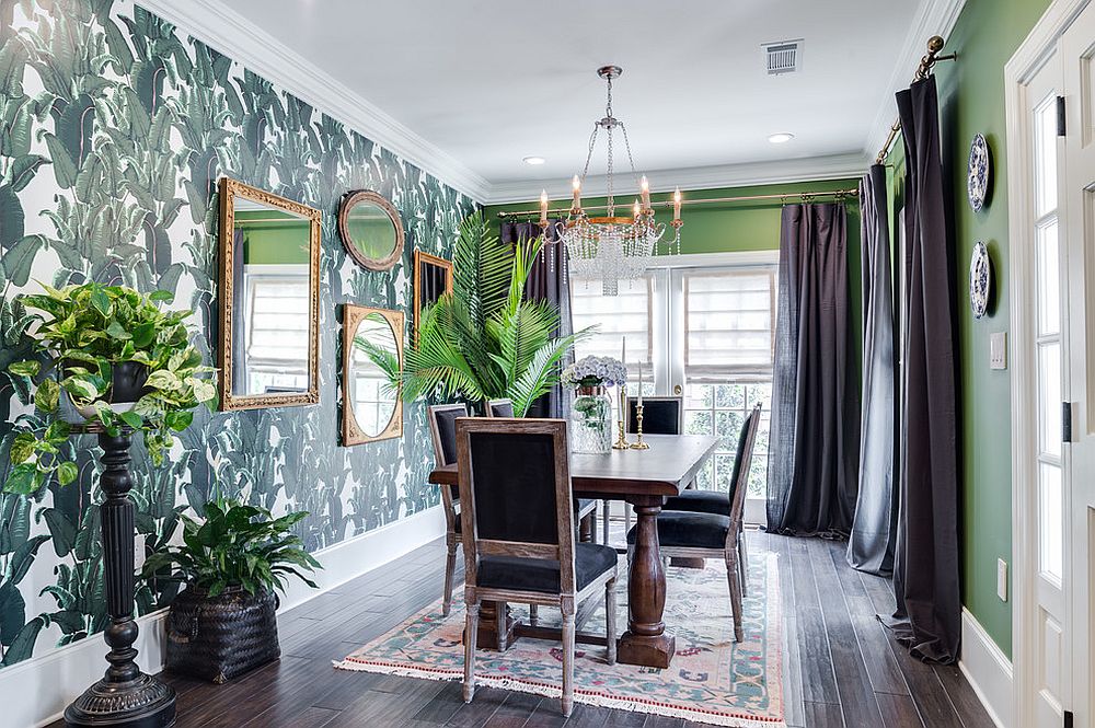 Les grandes feuilles vertes dans le papier peint sont un moyen idéal pour ajouter une touche tropicale à l’intérieur sans trop changer d’autres aspects de l’espace. Grâce au papier peint jungle va vous faire voyager instantanément.