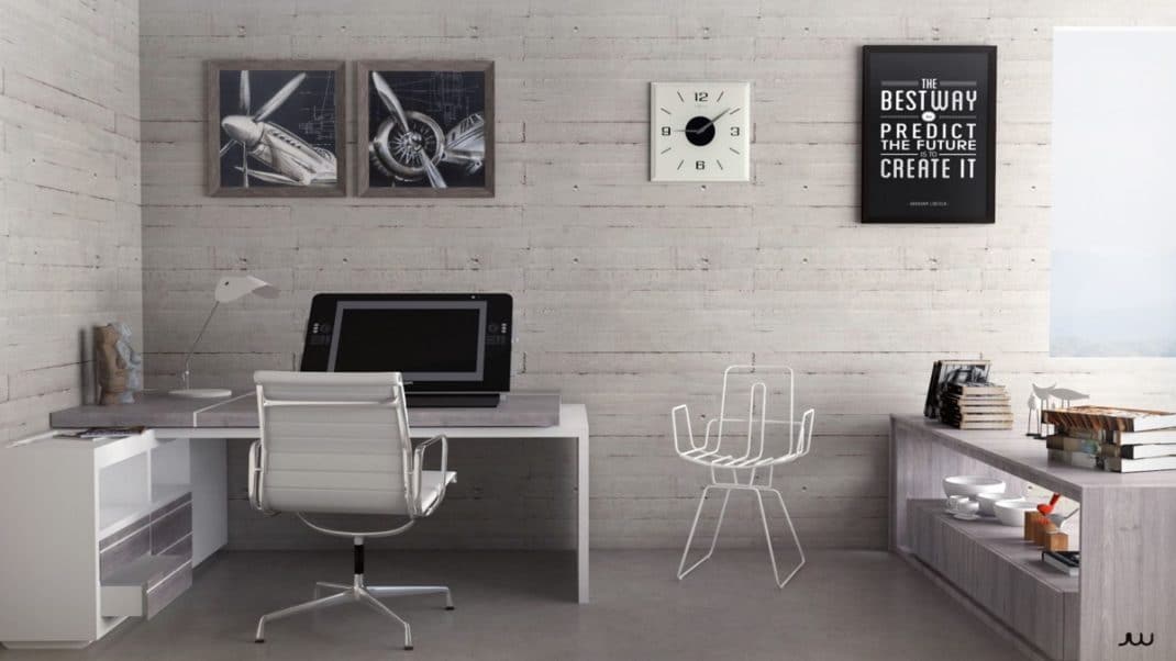 Bien sûr, chez vous, vous pouvez installer votre bureau où vous le souhaitez. Vous pourrez par exemple le nicher dans un coin du salon, l’intégrer à une bibliothèque ou l’installer sur tout un pan de mur dans votre chambre. Mon conseil : faites en sorte que l’ensemble reste cohérent. Le bureau doit impérativement utiliser le style de la pièce où vous l’installé. L’idée est vraiment de l’intégrer à votre décoration. Cependant, cela ne vous empêche pas de créer une séparation visuelle pour délimiter l’espace. Vous pouvez par exemple utiliser un placage en brique ou en bois sur le mur.