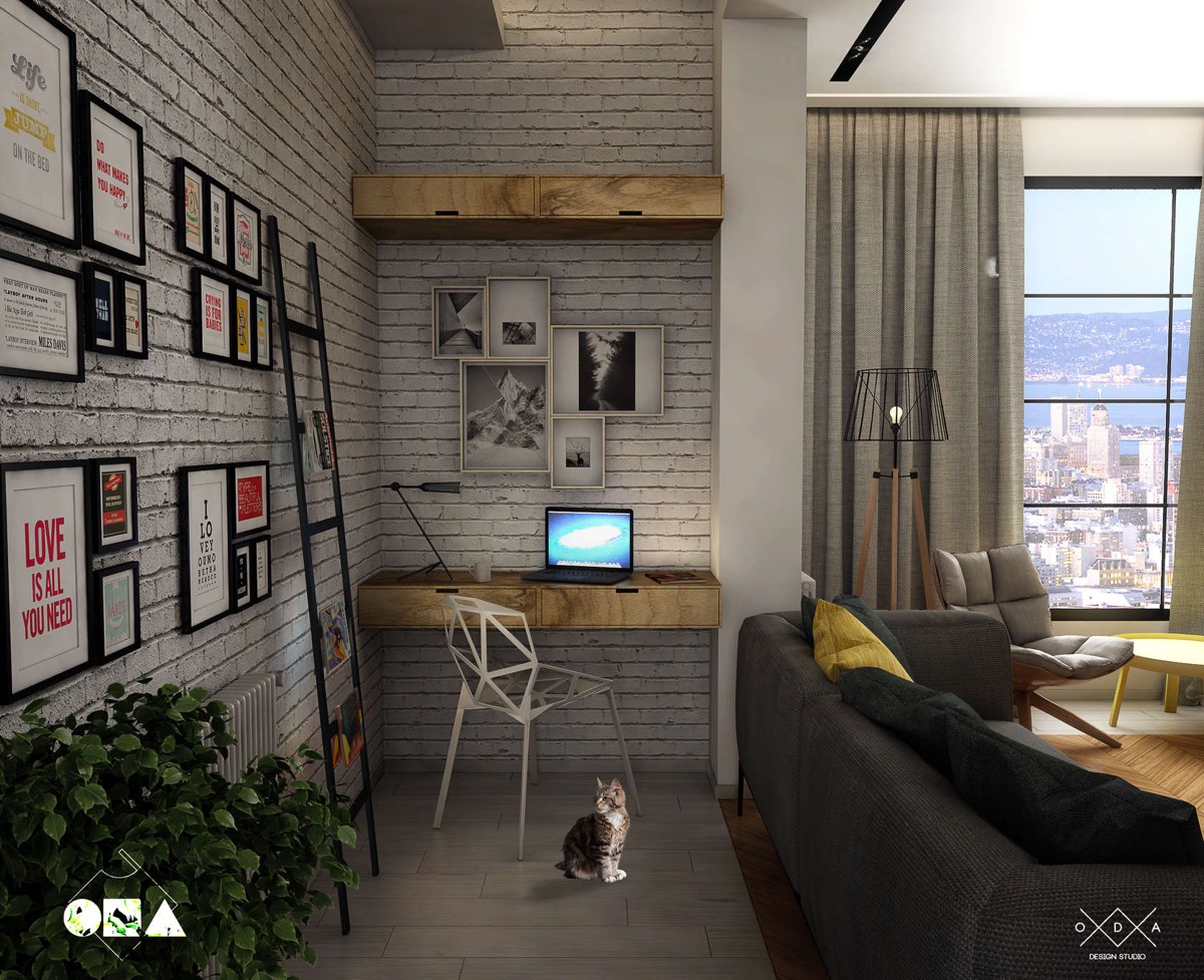 Personnellement, j’aime que mon bureau ait du caractère. Ce bureau utilise des tons neutres et organiques renforcés par l’utilisation d’étagère fabriquées avec des tubes d’acier et des planches en bois.