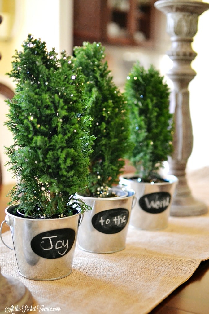 Voici un exemple de cette tendance déco pour Noël. Elle est très simple à mettre en place. Pour votre sapin, utilisez des seaux en métal. Un bac galvanisé et un plateau sont parfaits pour contenir quelques ornements saisonniers ou des plantes. En plus, une fois les fêtes passées, vous pourrez réutiliser sans aucun souci cet accessoire pour votre décoration ; contrairement à du papier kraft.