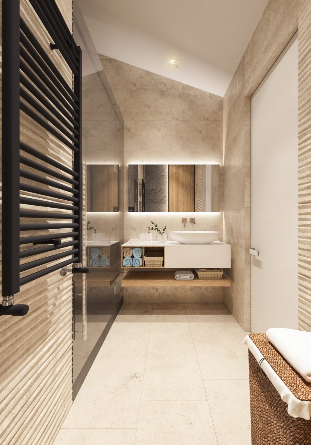 Personnellement, je suis assez fan de la chambre que vous pouvez voir sur les photos. Je trouve son agencement absolument exceptionnel. L’espace est à la fois douillet, bien pensé et fonctionnel. Enfin, terminons notre petit tour d’horizon dans la salle de bain. Ses murs en marbre se marient parfaitement avec bois clair des meubles et les équipements chromés. L’ensemble est terriblement harmonieux et reposant. Transformer un grenier ne signifie donc pas forcément avoir des poutres gênante partout.