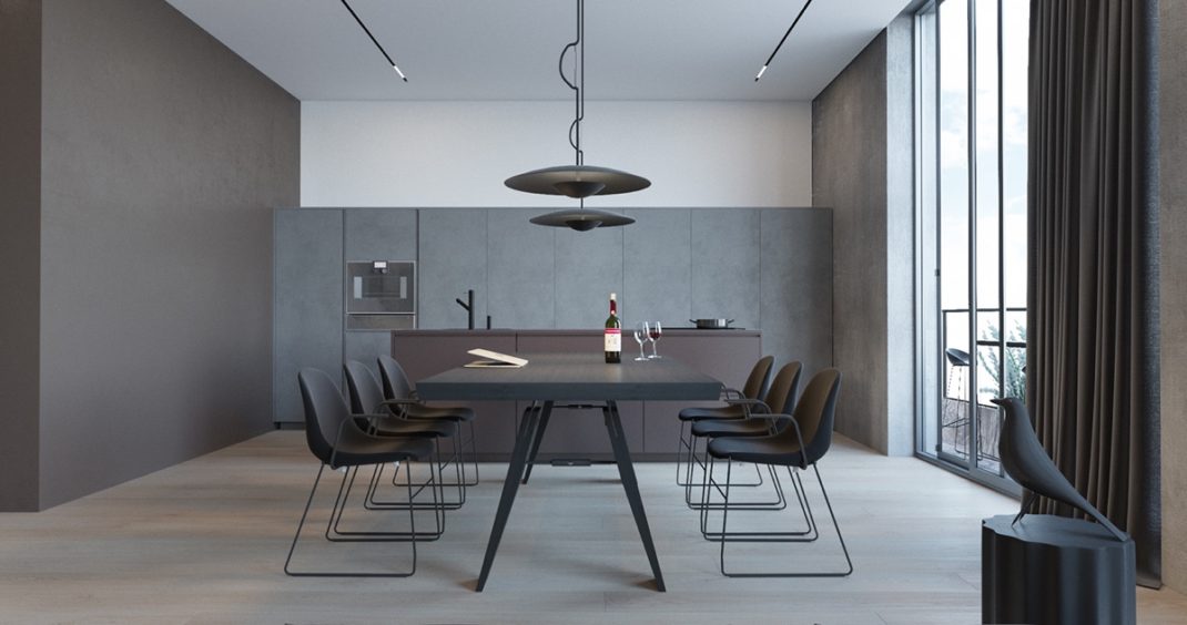 Même si les murs de la pièce sont nus, les différentes couleurs et éléments apportent de l’esthétisme et du relief à la pièce. Ici, tout est propre, bien rangé et à sa place. L’appartement a été conçu de façon à ce qu’il soit facilement utilisé puis rangé. Pour apporter un peu de relief à la pièce, de belles suspensions circulaires ont été ajoutées. Elles s’intègrent parfaitement dans ce décor minimaliste.