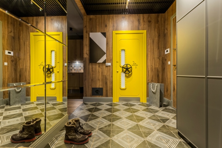 Le design intérieur de cet appartement n’est pas le plus simple à reproduire chez vous car la couleur jaune d’œuf n’est pas la couleur la plus facile à travailler. Cependant, utilisée à bon escient, le résultat est spectaculaire. En utilisant différents nuances dans les pièces de l’appartement, le rendu est encore plus spectaculaire. Ici, j’aime tout particulièrement la salle de séjour, la salle à manger et la cuisine.