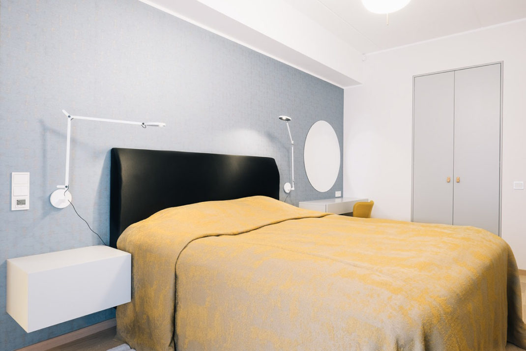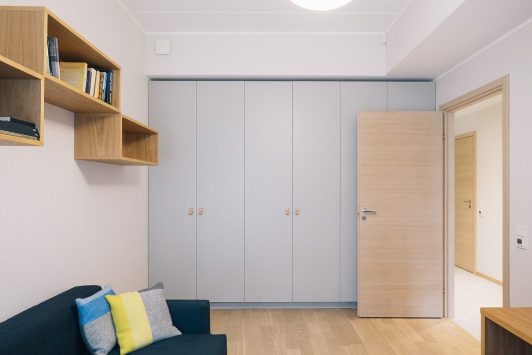 Petite astuce pratique d’Ines Käärma : lorsqu’il est ouvert, le placard de la chambre dévoile des miroirs pleine longueur.