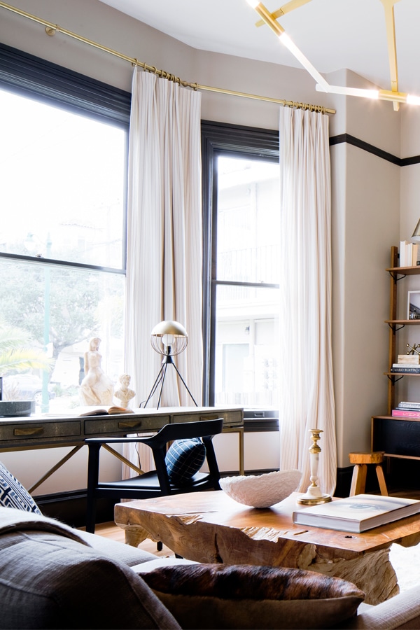 La rédactrice en chef de Sunset Magazine explique avoir mis plus de deux ans pour parvenir à ce résultat … je veux bien la croire ! Comme vous pouvez le voir, elle aime le mélange des styles. Luminaires modernes, garnitures noires, photographies étonnantes, garnitures victoriennes, etc. Le mélange le plus étonnant, qui se voit le plus, mais qui est aussi le plus réussi, c’est ce mélange de rustique et de moderne. Cette maison du 19e siècle a parfaitement réussi sont arrivée dans le 21e siècle.