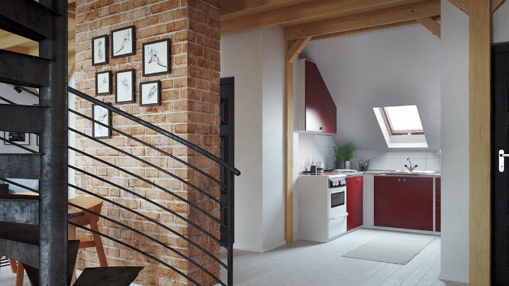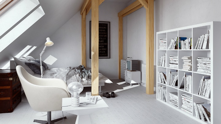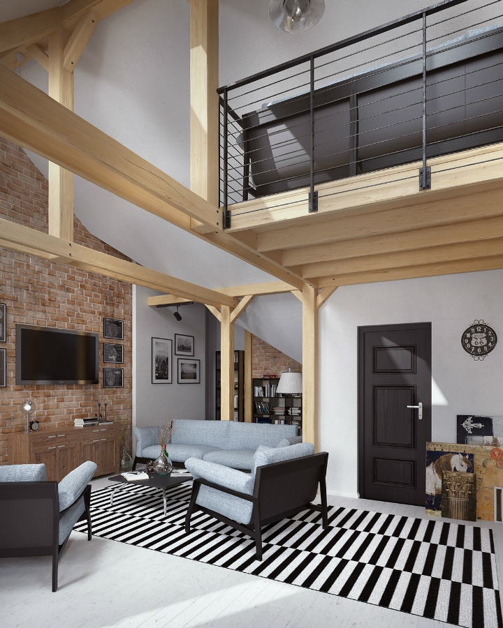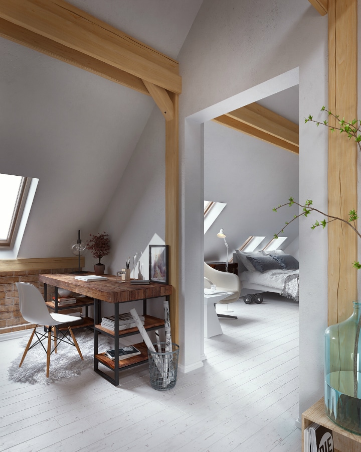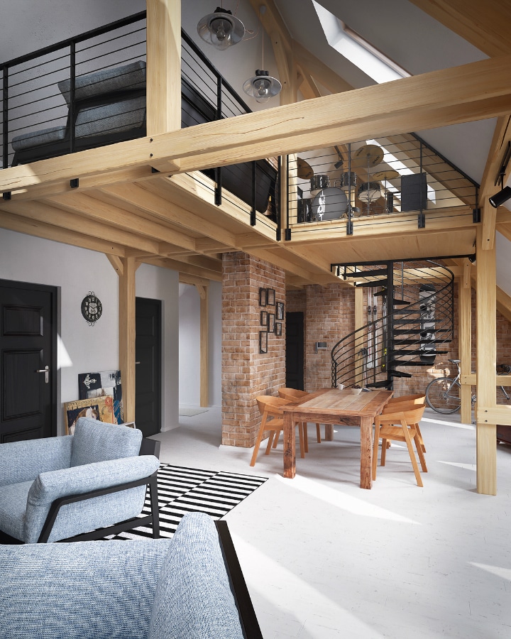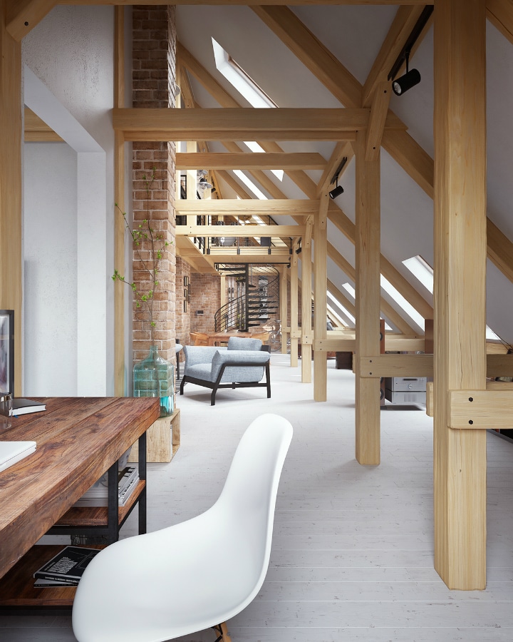 Les poutres apparentes et les planchers en bois sont d’ailleurs deux éléments clés qui rendent si unique l’appartement que nous allons visiter aujourd’hui. Ils donnent à cette maison un petit côté moderne très sympa.