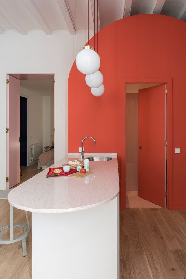 Cette rénovation d’appartement a été Imaginée par le studio local CaSA. L’appartement de 65 mètres carrés, est situé dans un bâtiment du 13e siècle. Au départ, l’appartement était très sombre et comptait trois petites chambres à coucher. Une redéfinition de l’espace était donc nécessaire ; tout en profitant et en exploitant les hauts plafonds avec poutres apparentes, les voûtes catalanes peu profondes et les grandes fenêtres d’origine.