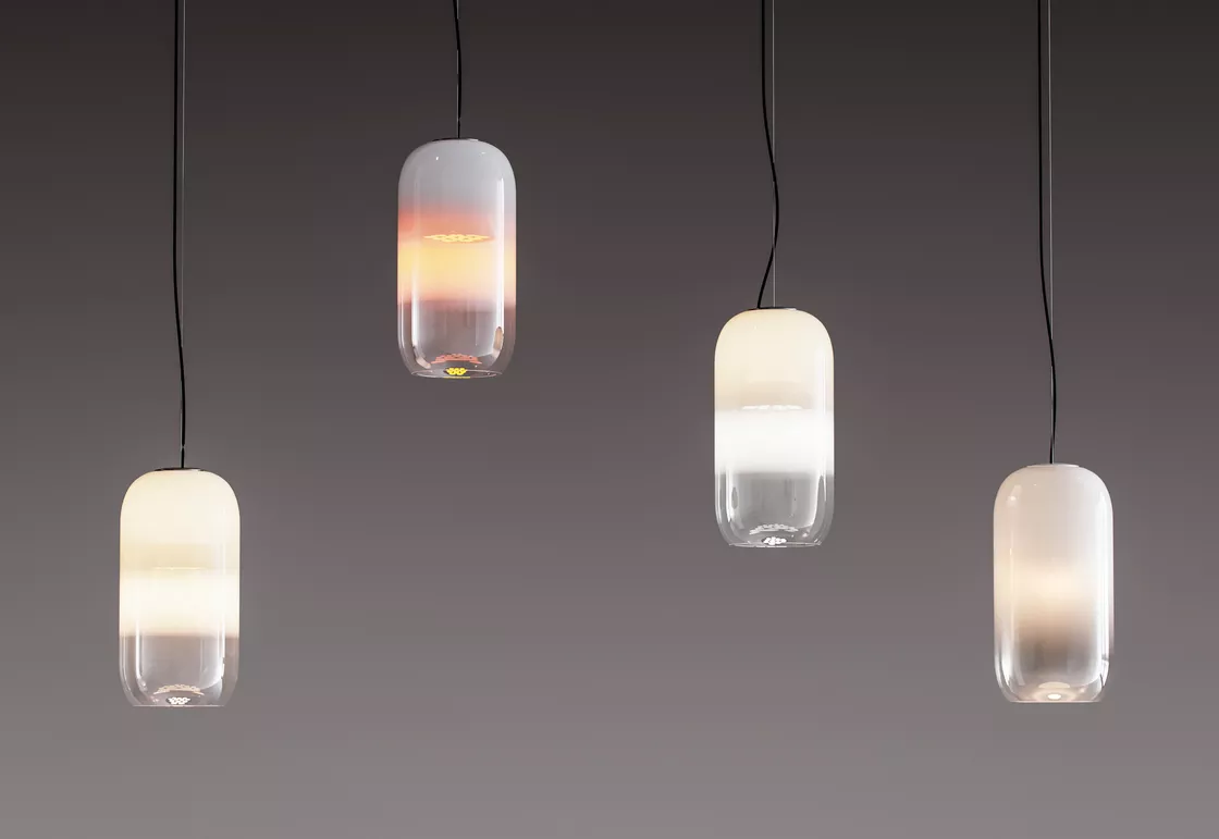 La lampe Gople de Bjarke Ingels pour Artemide est une espèce de goutte cylindrique en verre soufflé à la vénitienne. C’est la seconde collaboration de Bjarke Ingels avec Artemide. Pour Gople, Bjarke Ingels conçu une forme creuse en forme de pilule qui pend au fil. Elle est disponible en cristal blanc, en argent transparent ou en bronze transparent.