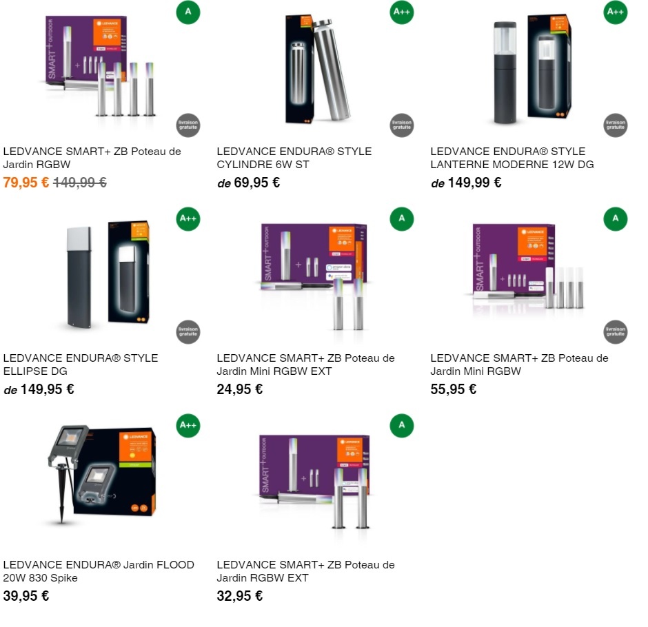 Ce qui est intéressant aussi, c’est que certains modèles disposent de la fonctionnalité SMART+. Ces lampes d’extérieur LEDVANCE sont des lampes connectées que vous pouvez contrôler via l’application dédiée ou grâce à Google Assistant ou Amazon Alexa.
