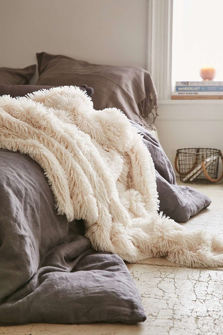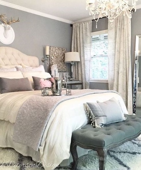 Un banc près d’une grande fenêtre serait parfait pour une chambre grise. Essayez d’avoir une zone de la pièce très claire afin de la rendre beaucoup moins sombre. Ayez en tête que toute chambre grise doit avoir au moins une source de lumière naturelle (ou deux, si possible) afin que la chambre soit aussi agréable à utiliser la journée. De nuit, un lustre ou un lampadaire compléteront le décor.