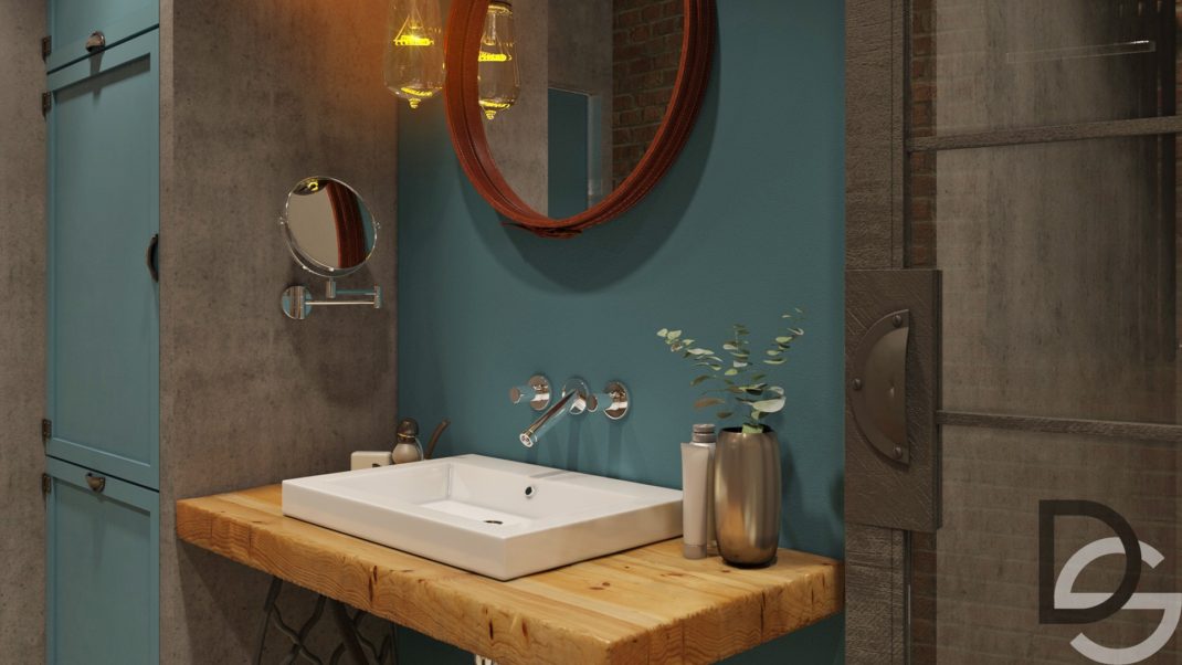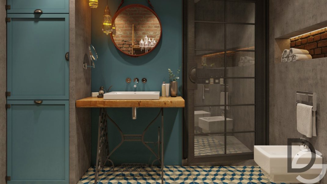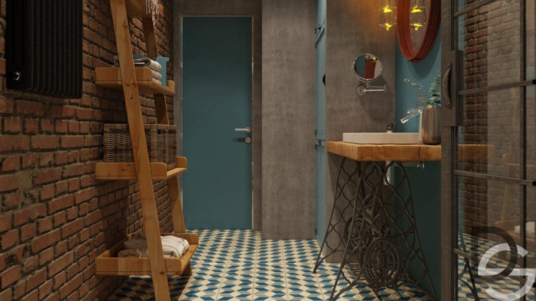 Enfin, la salle de bain fait la part belle à la couleur bleu électrique, au béton, aux briques et au bois. Une couleur et trois matériaux qui correspondent parfaitement au style industriel bohème du lieu.